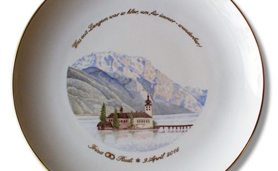 Zur Diamantenen Hochzeit nach der Deckenmalerei einer Kirche und Schriftzug Fürstenberg | „Carlo Dal Bianco“ | Gourmetteller mit kleinem Spiegel | Ø 29 cm