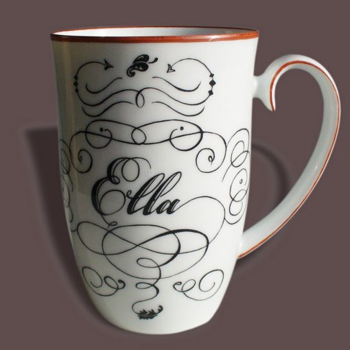 Veröffentlicht am 21. November 2017 Tasse mit Namen Die Tasse wurde mit Dekor in Schwarz und Rot und dem Namen Große Tasse 0,3l Weimar Porzellan