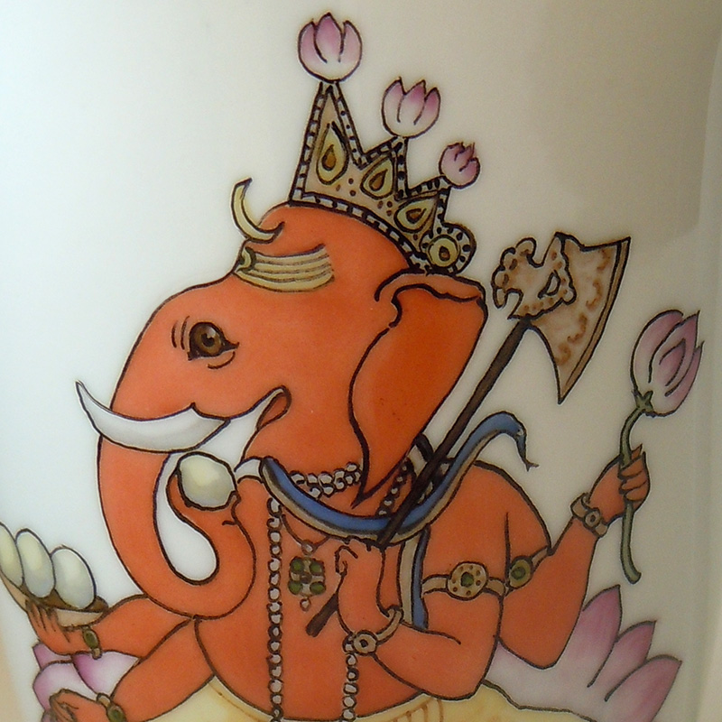 Porzellanmalerei mit der göttlichen hinduistischen Form Ganesha, nach einer Miniatur aus Basohli c. 1730