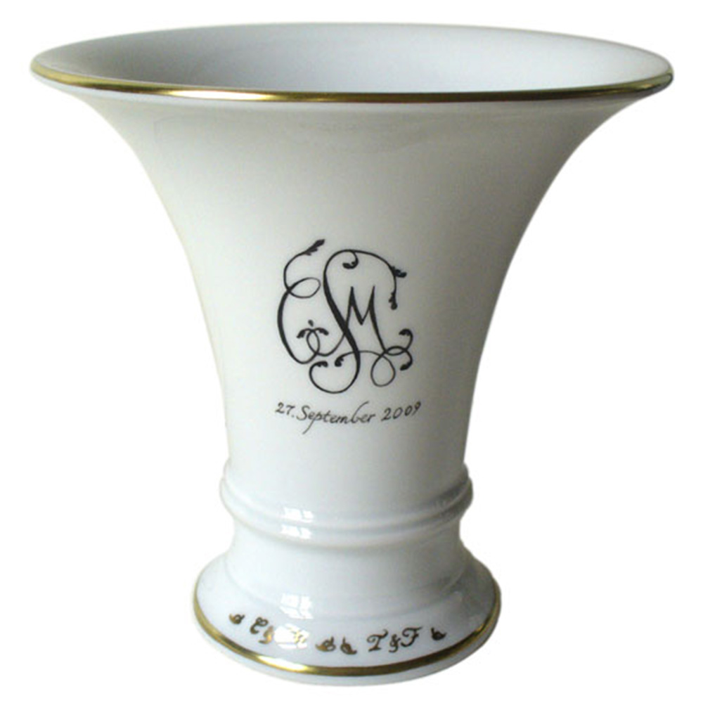 individuelle Monogramme können auf Ihr weißes Porzellan aufgebracht werden. Bereits vorhandene Serviceteile können auch nachträglich noch bemalt und gebrannt werden, sofern sie absolut frei von Schäden sind.
