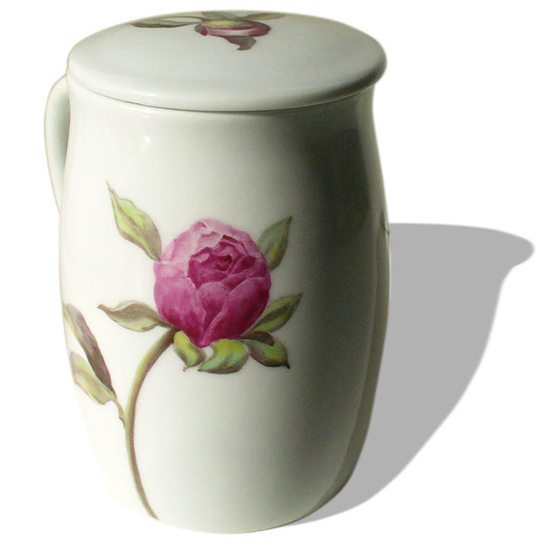 umlaufend bemalt mit Pfingstrose in verschiedenen Blühphasen. Auf dem Seckel findet sich eine Knospe;